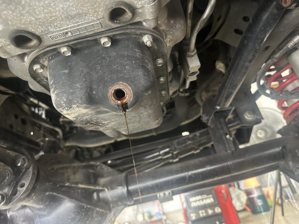 コチラの車両はリフトアップされており、オイルを入れるときやオイルエレメントを交換する際に届かない為洗車用脚立を使用して交換していきます!