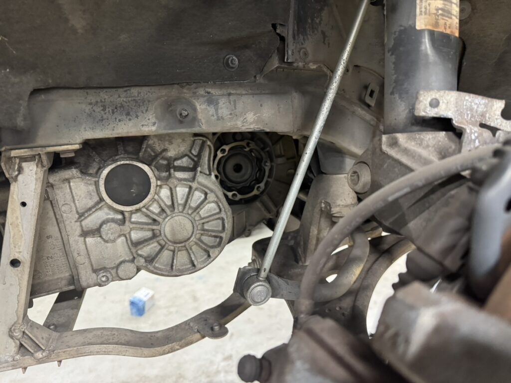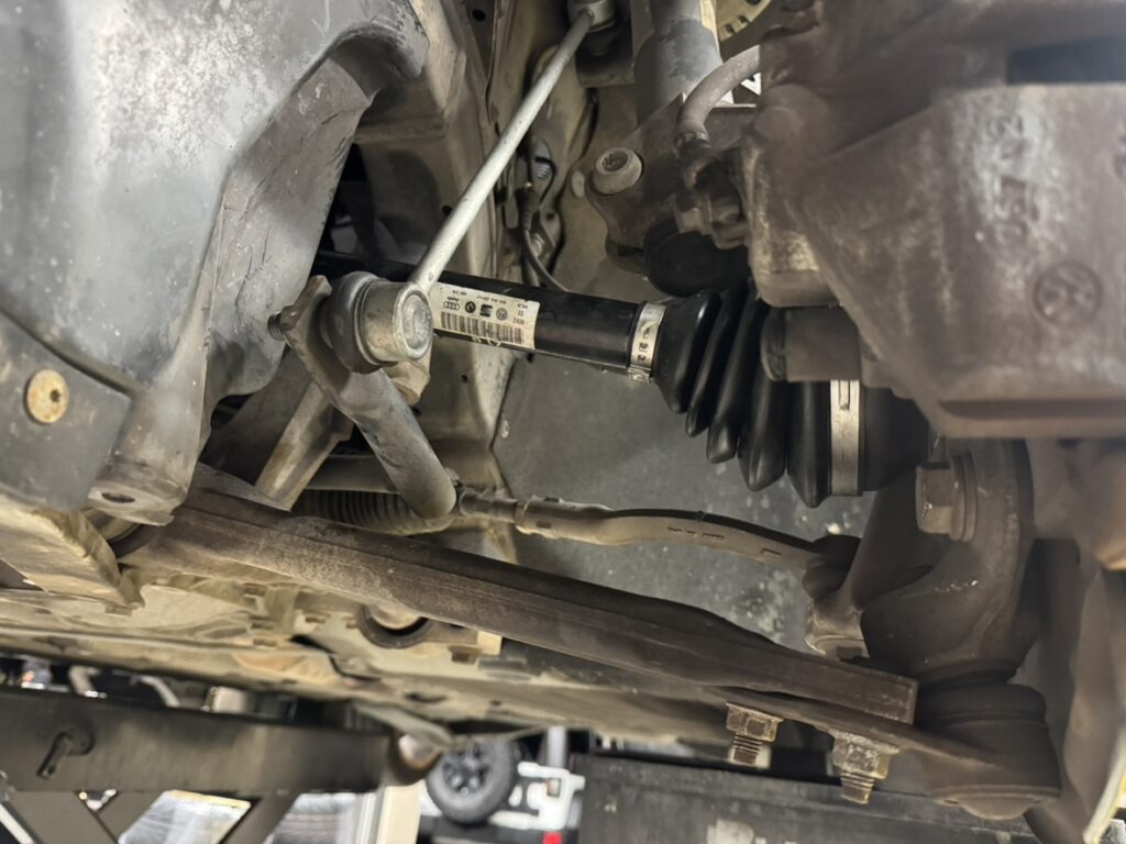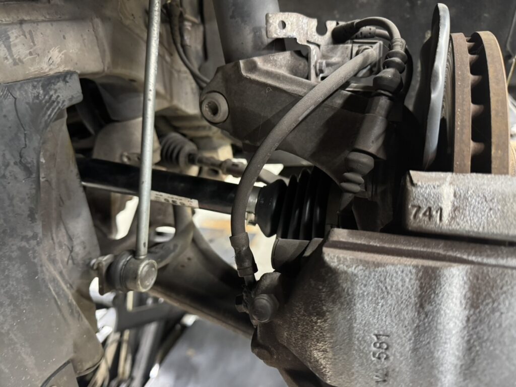 あとはミッション側の取り付けボルトを取り外し、ドライブシャフトを抜いていきます!