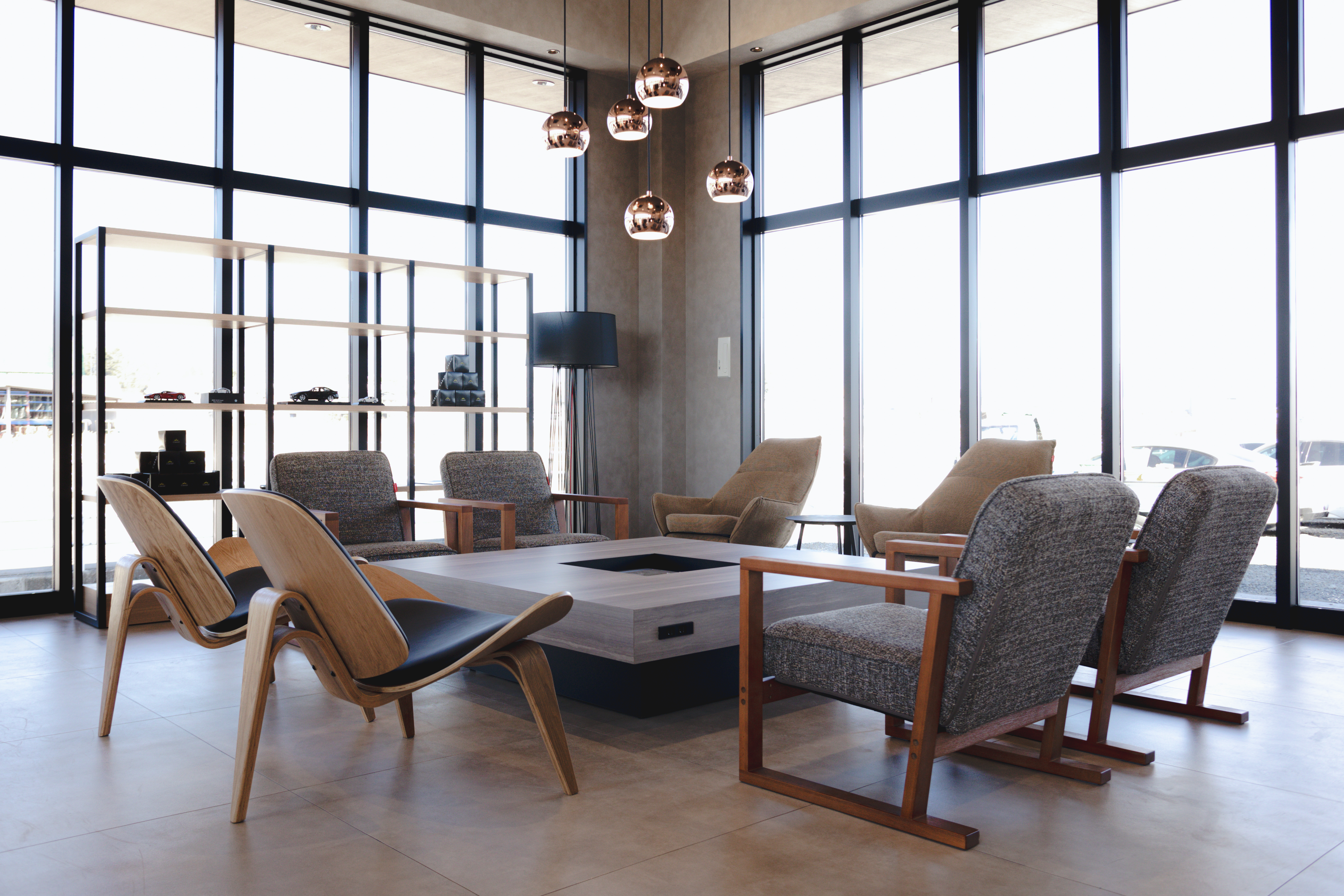 岡山県赤磐市に拠点を構える私たちの職場は、2024年にリブランディングした店舗と整備工場を備えています。
